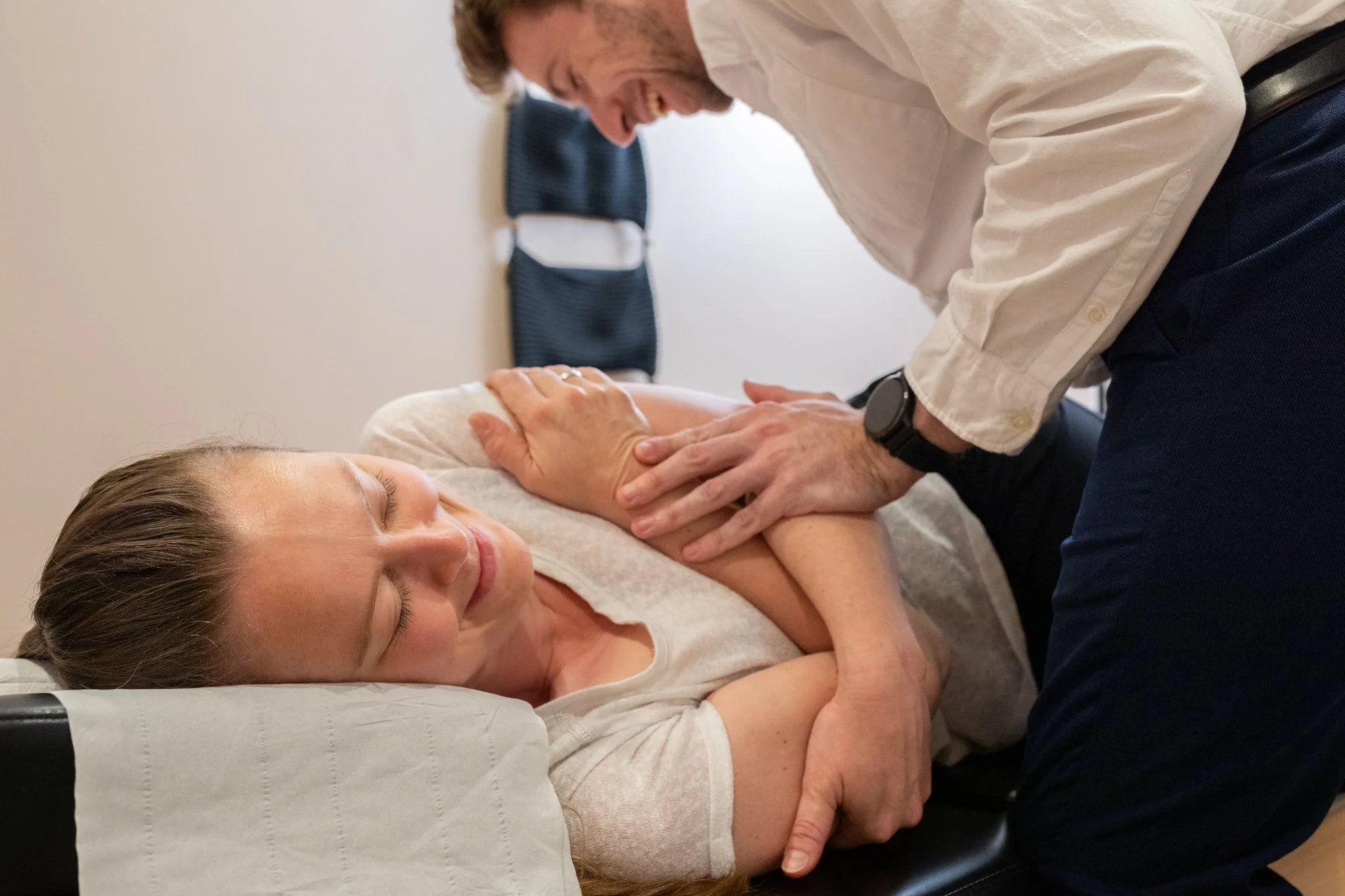 Chiropractors use ‘adjustments’ to help get movement in the joints and release pressure off neighbouring nerves. An adjustment is where a Chiropractor puts a precise, skilled impulse to a specific joint, in a specific direction at a specific angle with minimal force. You can often hear a click or a crack when the movement occurs, it’s not painful or scary, it is just gas being released from a synovial capsule surrounding the joint. If there are any contraindications to adjusting an individual then other methods can be used.
